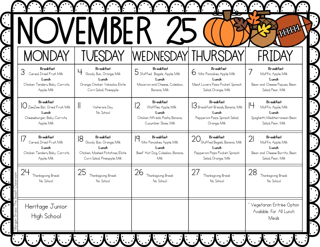 Heritage Junior will begin offering free breakfast and free lunch for ALL students starting Monday, November 3, 2025. Breakfast