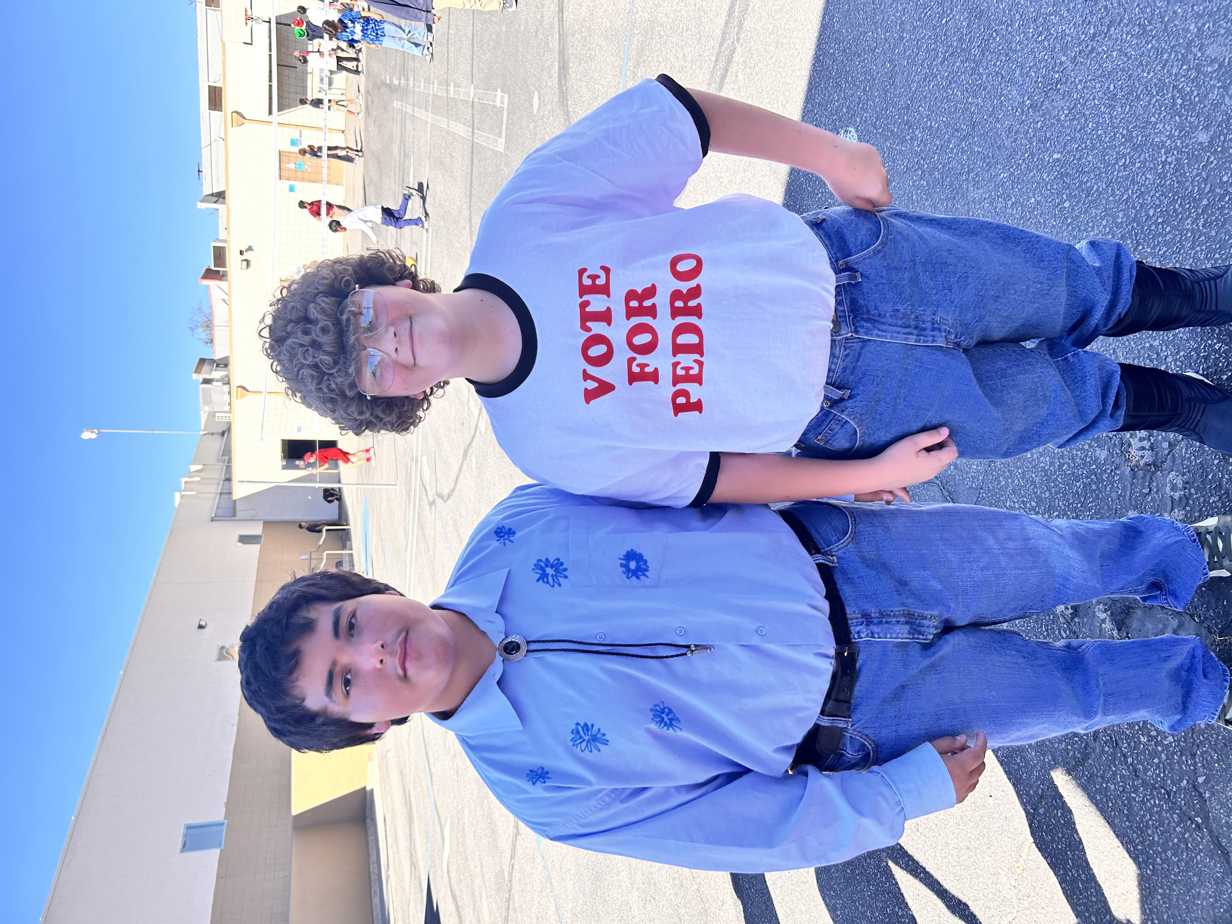 Students participating in Dynamic Duo Day by representing the movie Napolean Dynamite.
