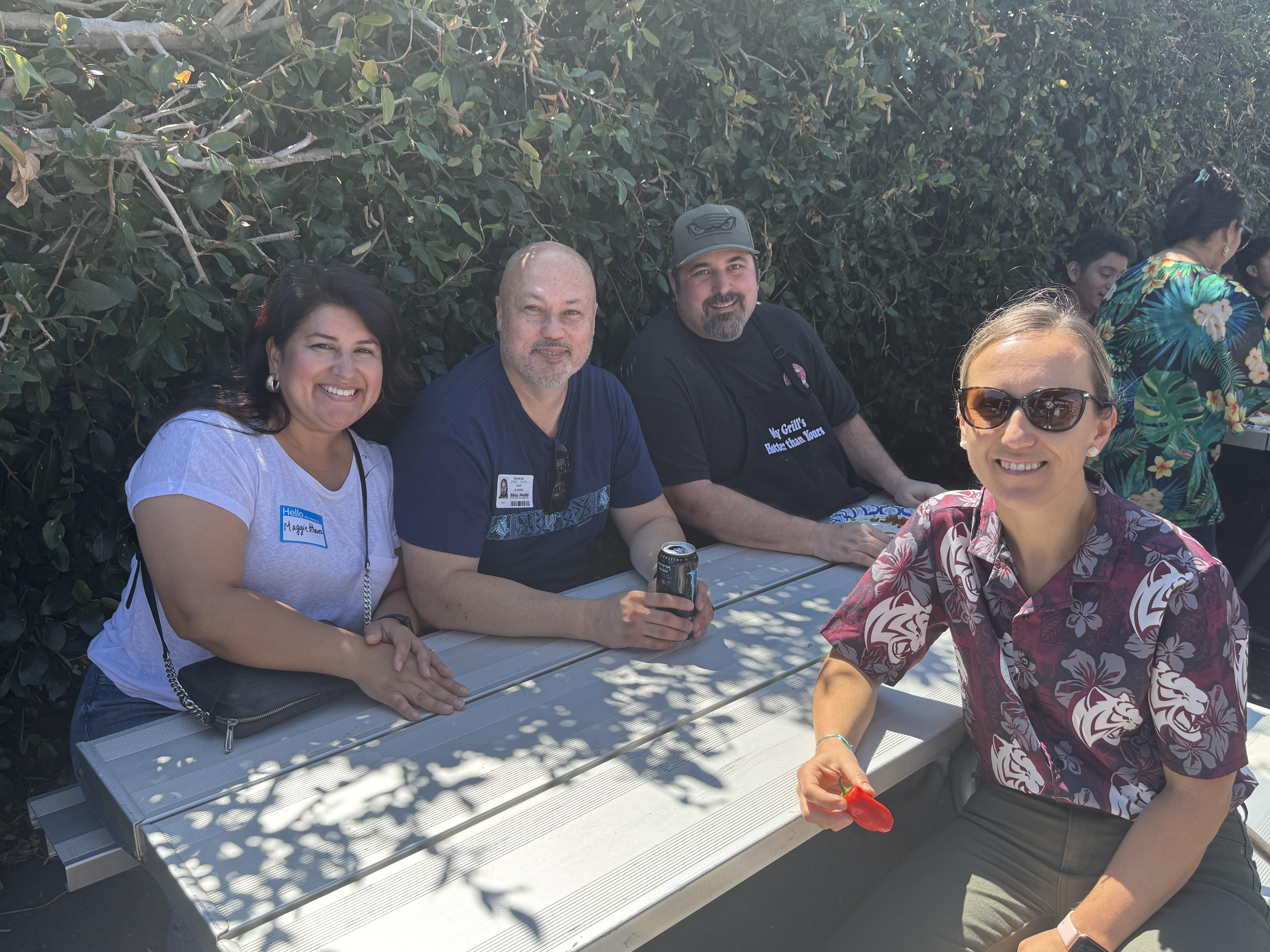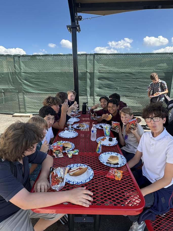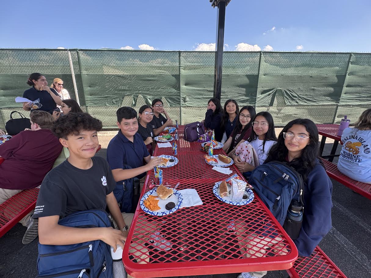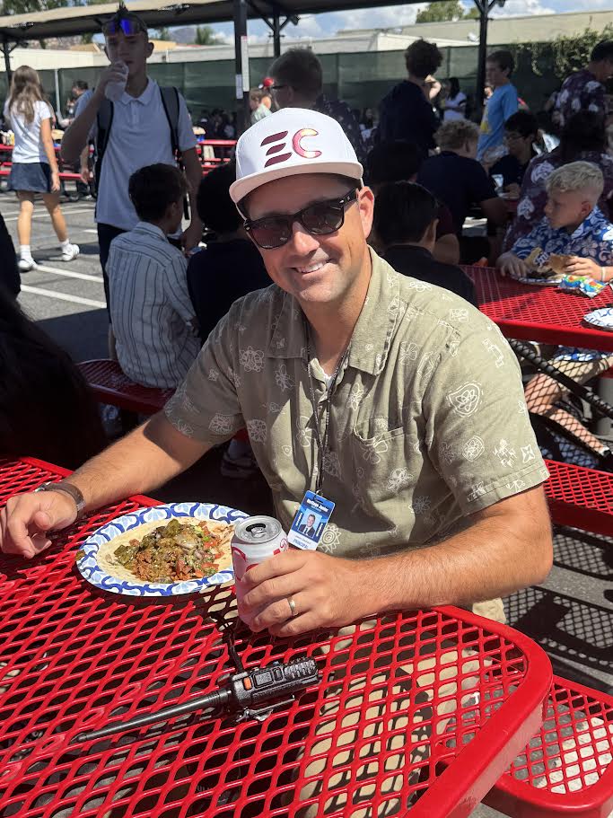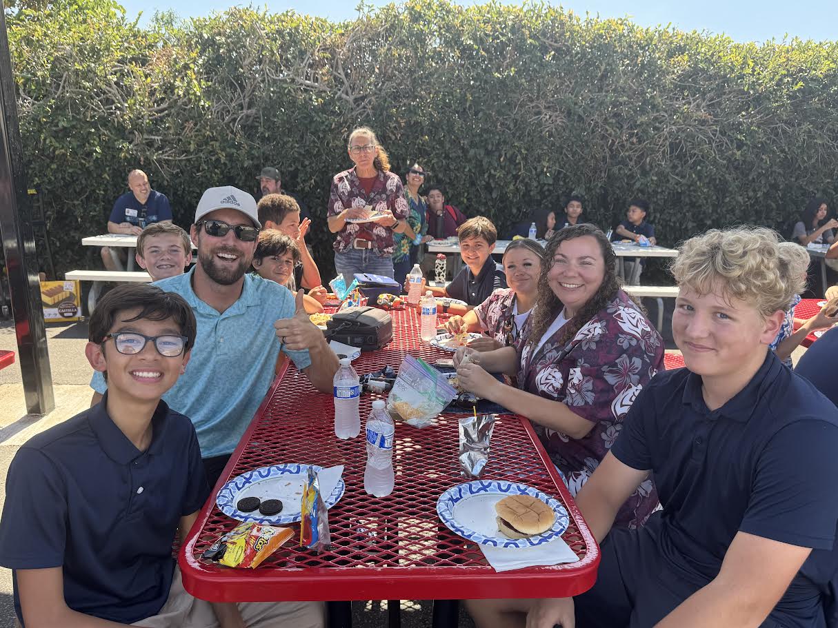 Mr. Gaylord enjoying lunch with students at the BBQ.